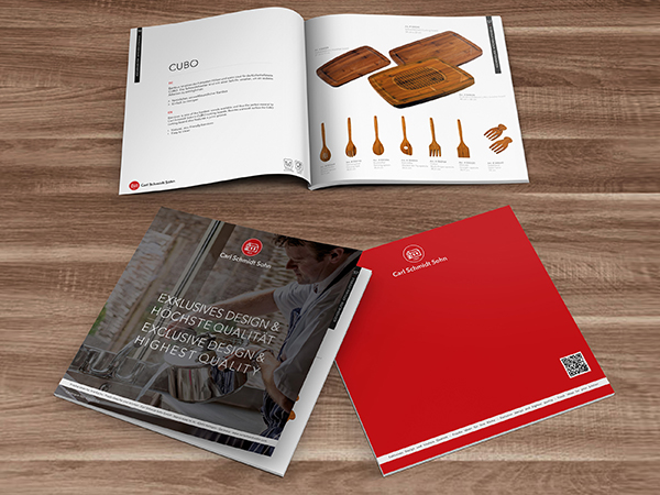 Gestaltung eines mehrseitigen Katalogs für Küchenware.